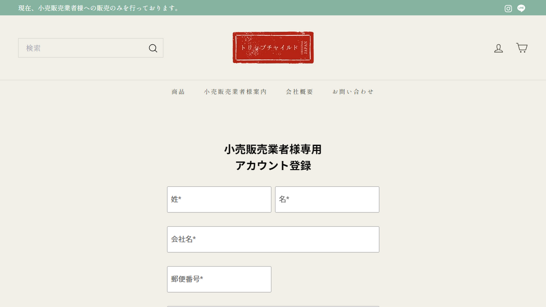 こちらから小売販売業者様専用のアカウントをご登録ください。